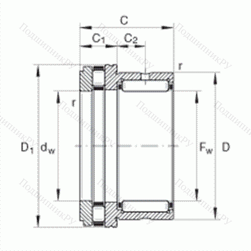 Подшипник комбинированный с короткими цилиндрическими и игольчатыми роликами NKXR 50